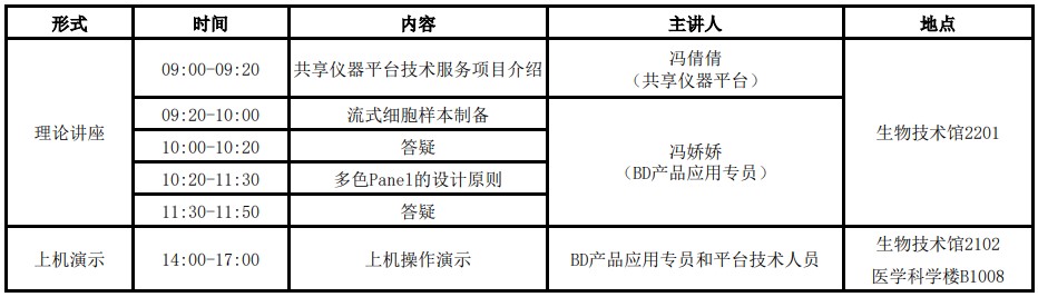 培訓內容:共享儀器平臺技術服務項目介紹、流式細胞樣本制備、多色Panel的設計原則、答疑及上機操作演示。