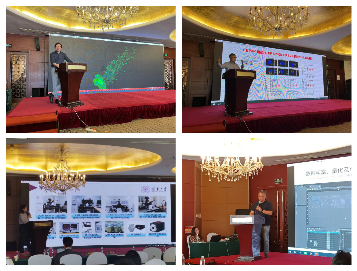 本次研討會先由王文娟高級工程師介紹了尼康中心的發展情況及核心技術能力,并對尼康公司多年的大力支持表示感謝。清華大學俞立教授、北京大學陳建國教授分別介紹了各種超分辨率顯微鏡在遷移體的生理過程研究和中心粒結構研究中的應用。此外,尼康中心王瑾瑜工程師和尼康公司薛志紅工程師分別介紹了尼康光學顯微鏡從成像到圖像處理支撐案例和Nikon多模態成像系統AXR-NSPARC/Ji的應用。