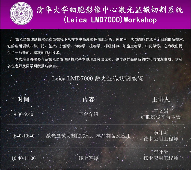 培訓內容:激光顯微切割系統基本原理,樣品制備及應用。