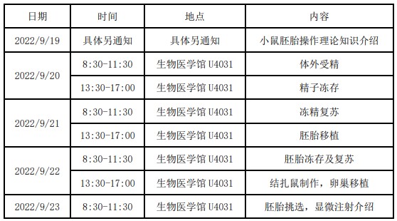 實驗動物中心第三期小鼠胚胎操作培訓會通知