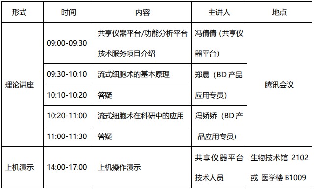 培訓內容:共享儀器平臺/功能分析平臺技術服務項目介紹、流式細胞術的基本原理、應用、答疑及上機操作演示。