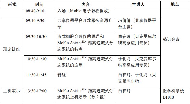 培訓內容:Beckman Moflo AstriosEQ超高速流式分選儀的原理、分選系統特點及應用。