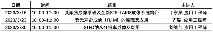 3. Leica激光共聚焦顯微鏡系列專題培訓的日程安排如下,歡迎大家報名參加。