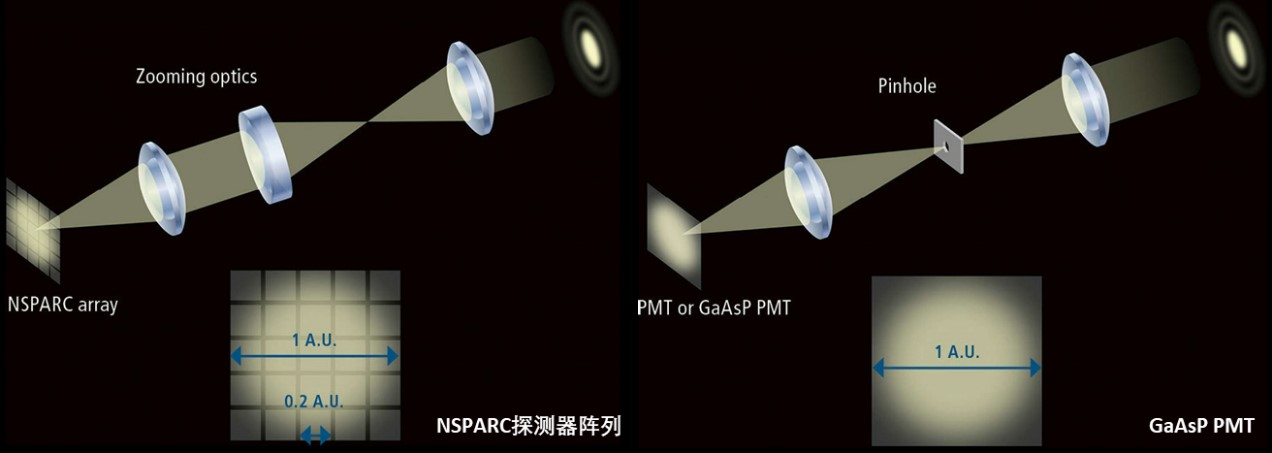 傳統單點掃描探測器只能對每個掃描點獲取一個強度信號,NSPARC具有25個檢測單元,其工作時就像一臺靈敏度極高的相機,探測器會收集來自每個掃描點熒光信號的二維空間信息。適合弱樣品和3D深度層掃!