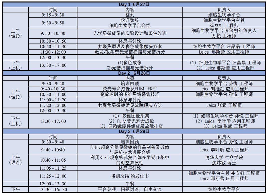 為廣大科研工作者、公共平臺管理人員系統了解激光共聚焦顯微鏡的成像原理和高階操作技巧,獲得高質量、可靠及可重復性的實驗數據并提高圖像采集效率,避免數據圖像采集誤區,由清華大學生物醫學測試中心細胞生物學平臺主辦,徠卡顯微系統上海(貿易)有限公司協辦,將于2024年6月27日-29日在清華大學舉辦第一期顯微成像高階培訓班,為廣大用戶提供共聚焦多維度成像技術解決方案。