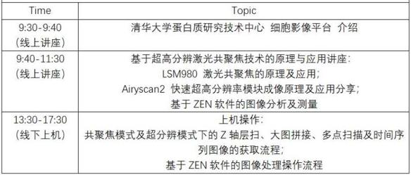 培訓方式:線上講座,騰訊會議;線下上機,儀器上機地點清華大學生物醫學館U6-115,圖像處理工作站上機地點清華大學生物醫學館U6-110